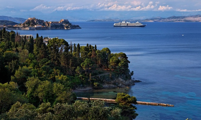 Villa Aphrodite commands one of the most stunning views on Corfu island. From the front terraces bordering the swimming pool one looks out across the sea channel to the Greek mainland, the coast line and mountains of Albania and the fortress above Corfu town.