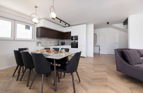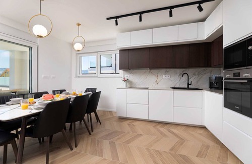 Villa Aria is a brand-new, modern villa located just 50 meters from the sea, in the peaceful village of Klimno on the island of Krk. This villa is the perfect choice for those seeking a tranquil retreat right by the sea. With a spacious area of 220 m², spread across two floors (ground and first floor), Villa Aria comfortably accommodates up to eight guests. The heated pool and underfloor heating make it ideal for holidays not only in summer but also in early spring and late autumn.