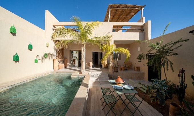 What truly sets Villa Aromi apart is its immersive experience. Guests are invited to unwind in a private setting that feels deeply connected to its surroundings—whether by lounging poolside with panoramic desert views, participating in wellness-focused yoga sessions, or enjoying locally inspired cuisine in a serene garden. The villa’s atmosphere is tranquil and inspiring, appealing to those seeking authenticity, comfort, and a strong sense of place. It is more than accommodation—it is a harmonious expression of Moroccan and African heritage, offering a captivating and deeply restorative stay.