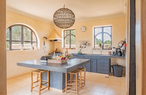 Villa Aruba Superbe villa avec service, personnel et piscine chauffée offers accommodations in Essaouira, 10 miles from Golf de Mogador. This property offers access to a balcony, free private parking, and free Wifi. The accommodation provides airport transfers, while a car rental service is also available. Providing a terrace and pool views, the spacious villa includes 5 bedrooms, a living room, satellite flat-screen TV, an equipped kitchen, and 5 bathrooms with a walk-in shower. Towels and bed linen are provided in the villa. There's also a seating area and a fireplace. There is an on-site restaurant, but if you'd rather cook your own food you can make use of the barbecue facilities and eat in the private dining area. Guests can enjoy the outdoor swimming pool and garden at the villa. Essaouira Mogador Airport is 16 miles away.
