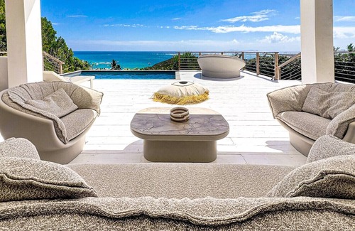 Villa Atao is a magnificent vacation home with 180° ocean views featuring 4 bedrooms and 4 bathrooms, close to Orient Bay.
