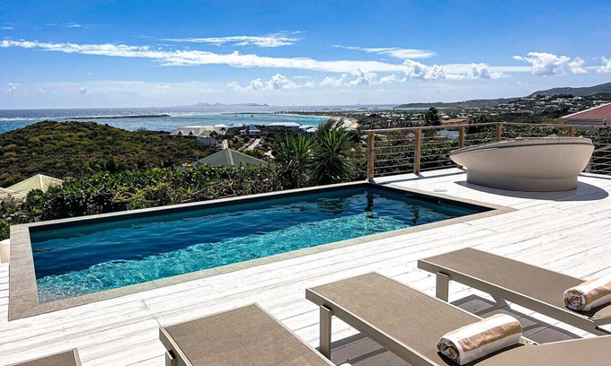 Villa Atao is located on a high point offering an incredible sea view with the islands of Pinel, Tintamarre and Saint-Barthelemy as a backdrop.