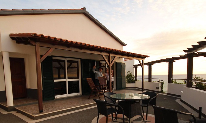 It is 20m above sea level with an uninterrupted 180 degree sea view over the surf break and along the coast to Paul do Mar. Facing West, it enjoys spectacular sunsets and moonlight seascapes.