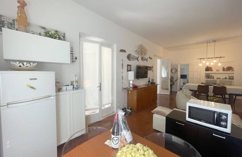 In Villa 20 mt from the sea, apartment on the ground floor with large garden and patio,where enjoy relax and dinig, spacious living room, kitchen, two double bedrooms, one twin room with extra single bed and bathroom. Equipped by washing machine, tv and parking. Near the villa, the guests can easily get sandy beach, restaurants along the sea where enjoy local fresh fish. The main services, shops and bar are within walking distance.