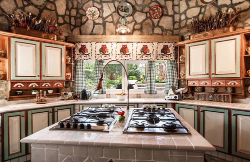 The interiors of the villa have a very special style that combines classic and modern. If on one hand there are frescoed halls, Persian carpets, period furniture and decor, on the other there is a cinema room, an equipped gym and the swimming pool with counter-current swimming. The ground floor has three entrances from the outside, an entrance corridor with frescoes, two large halls and a reading room, two dining rooms and a fully equipped kitchen, billiard room with three gaming tables and bar corner, music lounge, cinema and TV room with 10 seats, library-study, tavern, 2 service bathrooms. A covered swimming pool with counter-current swimming device, changing room and shower are created in a reconstructed cave. A laundry room is located outside the swimming pool. On the first floor there are 3 double bedrooms with ensuite bathroom with shower and walk-in wardrobe, 1 double bedroom, 1 bathroom with bathtub. The outbuilding, located near the swimming pool, includes a kitchen, 2 bathrooms with shower suitable for the disabled, a double bedroom, a large equipped gym. All the rooms in the villa and the outbuilding are equipped with air conditioning.