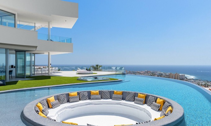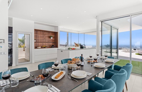 Located in a privileged location, the villa offers stunning views of the island of La Gomera and the south coast of Tenerife. Additionally, the villa is just a 5-minute drive from the beach of Las Américas.