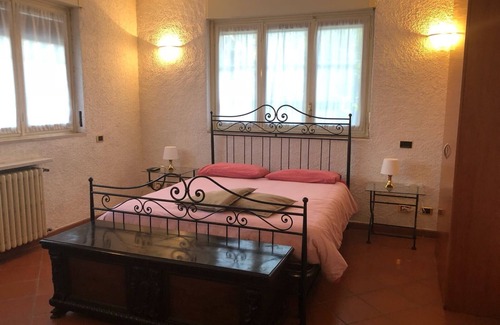Ground floor villa apartment with independent entrance, double bedroom + possible 1 square bed or cot, living room, bathroom. Garden and swimming pool available. Indoor uncovered parking. Located 10 min from Malpensa airport, 10 min from Varese its places of interest (Sacro monte, lakes, pre-alpine areas) 15 min from Lake Maggiore, 5 min from Gallarate. Possibility to leave the car and be accompanied to Malpensa with a cost of 15 euros per way. Ideal for cyclists.
