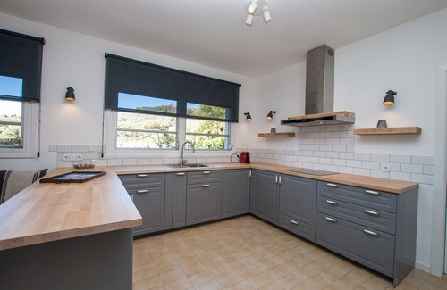 Large fully equipped kitchen with direct access to the terrace with built-in BBQ.