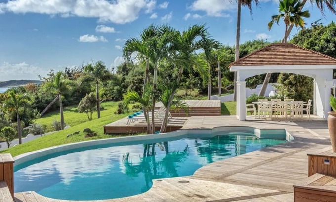 Villa Beauvoir is located on the French side of the island in Orient Bay Village with a beautiful view of Tintamarre & Pinel Island. The home has a total of 4 bedrooms/4 baths and can accommodate up to 10 people. Villa Beauvoir is less than a 10 minute walk to Orient Bay Beach, as well as the village square which is filled with a variety of restaurants and shops.