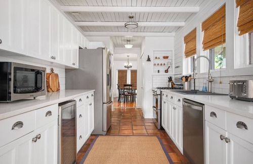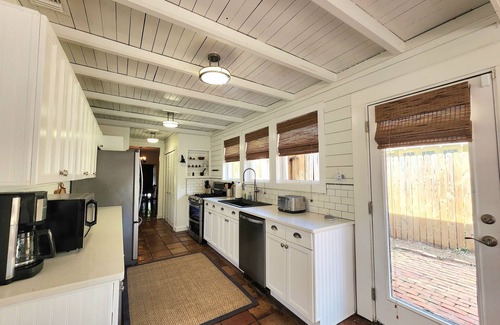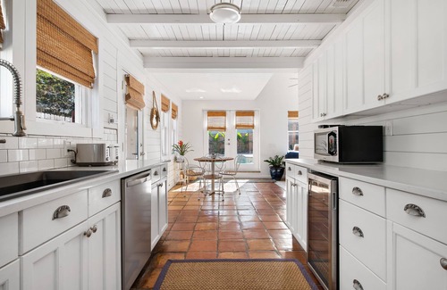 When arriving to the property you instantly notice the tropical fauna and modern yet historical design of the home. When first walking into the home you will be greeted by amazing tile floors leading you into the spacious open floorplan of the bottom floor. Here you can keep yourself entertained in the living room, enjoy a delicious breakfast in the dining room, or relax on the patio through the french doors! Going past all of that, you will find a kitchen stocked with everything you will need to make all of your favorite homemade dishes! Through here you can get to the back of the house where you will enter a lovely den that opens out to an amazing pool deck/patio area with a covered cabana that will make you feel like you are at a luxury resort!