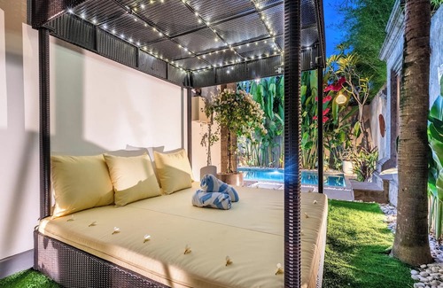 Located in Seminyak, this 3-bedroom, 3-bathroom vacation home lets you experience it all. Fans of nature and the outdoors will love being 8 minutes by car from Seminyak Beach and 14 minutes from Legian Beach. You're conveniently located within a 5-minute walk of Eat Street and Sunset Point Shopping Centre.