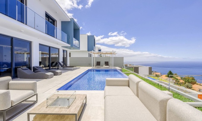This exceptional designer villa above the capital features a fantastic location with an incredible view over the bay and the harbour of Funchal. The villa is characterised by first-class quality, high functionality and state-of-the-art comfort. The house was equipped with high-quality materials and furniture by a well-known studio for architecture and interior design.