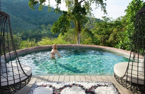 Escape to the tranquil Villa Buppha, where contemporary design blends seamlessly with nature. These two-story villa features a private pool, offering stunning views of both the rainforest and resort. The upper floor is home to a serene master bedroom with an adjoining outdoor relaxation area, while the lower floor boasts an expansive lounge and dining space perfect for unwinding. Inside, you’ll discover unique details like cocoon-shaped beds and furniture suspended from the ceiling, creating a peaceful, whimsical atmosphere.