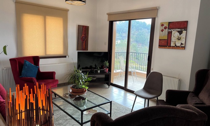 All the bedrooms are stylishly decorated and equipped with two double and two single beds ready to accommodate a maximum of 8 and direct access to big garden that offers you a fantastic panoramic view over the Troodos Mountain that takes breath. Children are welcome, a travel cot and extra beds can be arranged if notice is given well in advance.
