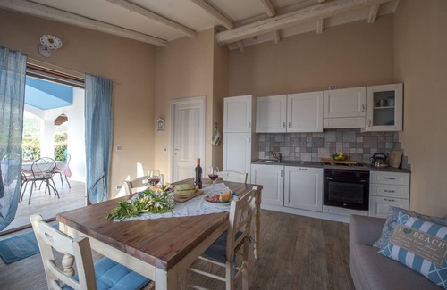 Villa Calipso is spread over 65 square meters and a large garden with lawn on three sides, with sea view from the large patio, furnished for outdoor dining. It is built in Sardinian style, with handmade tiles and exposed woods. The villa is completely new, furnished with taste and elegance, without giving up the functionality of all the spaces, ideal for spending a wonderful holiday. It has two spacious bedrooms, with double bed and bunk bed, bathroom, living room with sofa and modern and equipped kitchen. Equipped with air conditioning, wifi and TV.