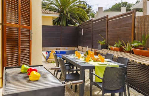 Villa Can Cuart is a beautiful property located in the exclusive area of Bonaire, it is located just a 5-minute walk from the beaches of Sant Joan and Sant Pere. It has capacity for 6 people and has a private pool with sun loungers and a barbecue, perfect for relaxing and dining al fresco.In the immediate vicinity of the house is the Port of Bonaire, also known as the port of "El Cocodrilo", where there are several restaurants, a supermarket and you can rent boats and take diving courses.Distribution:The house is divided into three floors, on the lower floor is the garage, with a large play area with table tennis, darts, as well as sofas for the little ones to enjoy.On the main floor we have the entrance, a spacious living room and fully equipped kitchen, later we find two bedrooms, one with a double bed (150x190cm) and the other with two single beds (90x190cm), both bedrooms have access to the rear where we have the swimming pool, terrace and barbecue. On this floor we have a complete bathroom with a bathtub. In the outdoor area we also have a small covered porch and garden.On the upper floor we have the main room with a double bed (150x190cm) with an en-suite bathroom and a private terrace.Comfort and services:Air conditioning, Internet Wi-Fi, TV, Barbecue, Heating, High chair, Dishwasher, Fridge / Freezer, Iron, Microwave, Toaster, Kettle, Washing machine, Hairdryer, Ping-pong table. Fully equipped with sheets and towels.Note 1. Final cleaning costs are included in the rental price. This circumstance does not exempt the client from his obligation to take care of the property. Nothing will be taken from the deposit as long as the use of the house is reasonable.Note 2. In those properties where it is possible to include an extra bed, and always subject to availability, the cost will be 15€ per person per day.Note 3. Der Check-out aus der Unterkunft ist um 10:00 Uhr. Wenn ein späterer Check-out möglich ist, was immer vorbehaltlich der Verfügbarkeit ist, betragen die Kosten 90 € bis 13:00 Uhr und 160 € bis 16:00 Uhr.Note 4. Der Eintritt in die Unterkunft ist mit unserem Agenturpersonal bis 22 Uhr kostenlos, danach kostet es 30 € (von 22 bis 24 Uhr) bzw. 50 € (nach 24 Uhr). Es besteht auch die Möglichkeit eines kostenlosen Self-Check-ins mit persönlicher Begrüßung am nächsten Tag.Note 5. Electricity consumption is not included in the price of accommodation. The cost is 0.25€/Kw to be paid on departure.Note 6. On the Balearic Islands, all hotels/ tourist accommodations have the obligation of charging the guests over the age of 16 the Tourist Tax, which is then transferred to Local Authorities.