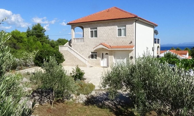 Surrounded by pine trees on the most southern tip of island Brac. From the large covered terrace there is beautiful view of sea,Makarska riviera and island Hvar. I has a very large court yard, for the children to play on, outdoor shower, BBQ grill on your disposal and the private covered parking area.
