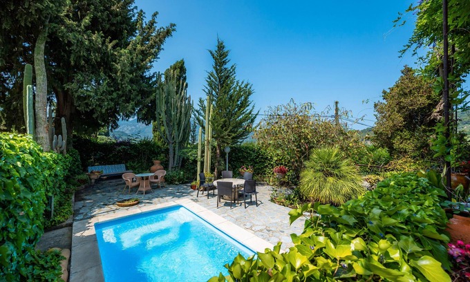 Traditional Mallorcan house located in an idyllic area of Mallorca, in the Sóller valley, near the charming village of Fornalutx and the beautiful village of Binaraix. The house offers four spacious bedrooms (all with two single beds), as well as two bathrooms, a fully equipped kitchen, living room, entrance hall, and dining room, distributed over two floors. You will also find a cosy garden with a pool, private parking, several terraces, fans, and Wi-Fi.