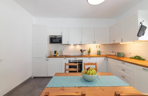 Parking is available through shared spaces, including on-site, garage, and street options. Up to two pets are welcome to join your holiday. Families will appreciate the private garage for exploring the area, and for a bit of activity, a local tennis court is just a 20-minute walk away.