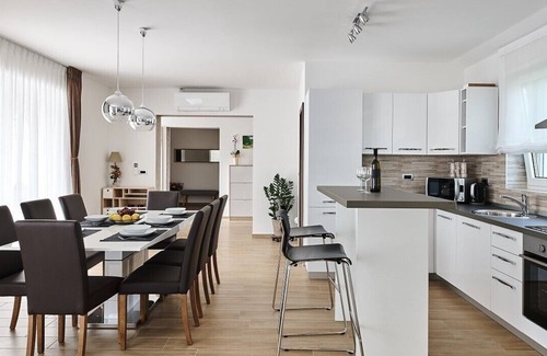 Experience absolute tranquility on holiday by staying in the elegant modern Villa Celtis in Ljubići, a village in northern Istria! The villa can accommodate up to 8 people and provides the perfect place to enjoy the peaceful green countryside with family and friends.