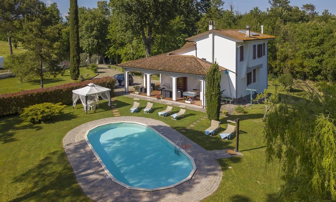 The holiday villa is in a delightfully peaceful and green zone, on the edges of a forest from where you can enjoy the best of Tuscany in less than an hour’s drive. The closest restaurant, grocery shop and bus stop are all within 10-15 minutes of walking distance. The city of Fucecchio is a 15-minute drive from here, while, Montecatini Terme (golf) and Monsummano thermal baths are less than half an hour away. The art city of Lucca, Pisa, and Florence are about 45 minutes to 1 hour\'s driving distance from here. For those who wish to enjoy the sun, sand and the sea of the Tuscan Coast are located just 45 minutes away from seaside resorts like Viareggio, Marina di Pisa, Forte dei Marmi and the famous Marina di Pietrasanta.