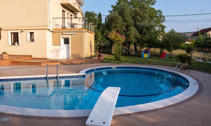 Villa Cesar offers accommodations in Mostar, 6.6 miles from Old Bridge Mostar and 22 miles from Kravica Waterfall. This property offers a private pool, free Wifi, and free private parking. On clear days, guests can head outside to enjoy the villa's outdoor fireplace or simply kick back and relax. Offering direct access to a balcony with pool views, the spacious air-conditioned villa consists of 4 bedrooms. Featuring a terrace with mountain views, this villa also includes a satellite flat-screen TV, a well-equipped kitchen with a dishwasher, an oven, and a toaster, as well as 2 bathrooms with a bath and a hair dryer. There's also a seating area and a fireplace. During warmer months, you can make use of the barbecue facilities and eat on the private patio. Outdoor play equipment is also available at the villa, while guests can also relax in the garden. Muslibegovic House is 6.7 miles from Villa Cesar, while Old Bazar Kujundziluk is 6.6 miles from the property. The nearest airport is Mostar International, 1.9 miles from the accommodation, and the property offers a paid airport shuttle service.