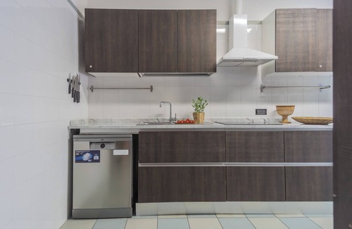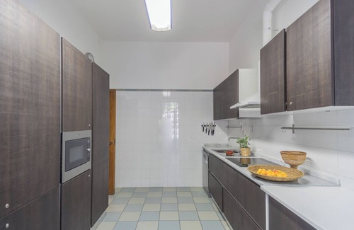 The villa boasts two kitchens. The indoor kitchen is functional and fully equipped with all the appliances you might need, including an oven, microwave, dishwasher, and a wide range of kitchen utensils, alongside a large indoor dining table. The outdoor kitchen allows for pleasant al fresco dining with a spectacular view, thanks to the barbecue and dining area.