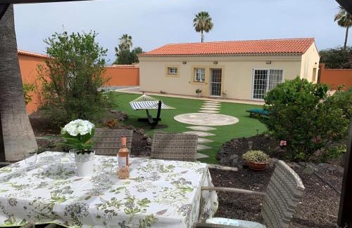 A 15-minute walk from Playa de San Blas in San Miguel de Abona, Villa Chloé offers accommodations with access to a hot tub. The villa, set in a building dating from 2014, is a 8-minute walk from Golf del Sur Golf Course and 11 miles from Aqualand. The villa also features free Wifi, free private parking, and facilities for disabled guests. This villa includes 2 bedrooms, a living room and a flat-screen TV, an equipped kitchen with a dining area, and 2 bathrooms with a bidet and a washing machine. A private entrance leads guests into the villa, where they can enjoy some wine or champagne and fruit. The property has an outdoor dining area. Guests can also relax in the garden or on the sun terrace. Los Gigantes is 26 miles from the villa, while Golf Las Americas is 10 miles from the property. Tenerife South Airport is 3.1 miles away.