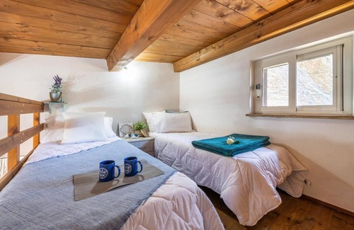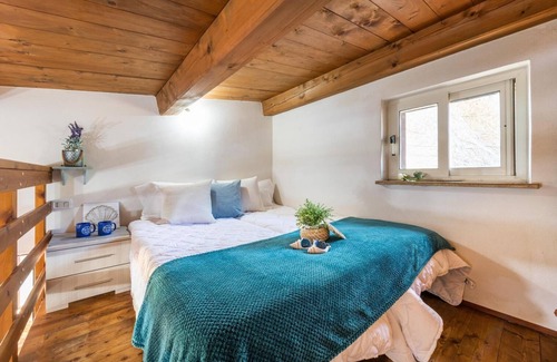 DESCRIPTION: On the ground floor: veranda-living room with double sofa bed, kitchen with kitchenette, loft with double bed or two single beds, a bathroom with shower. On the basement floor: 1 bedroom with double bed. Mosquito nets in all the rooms, external clothesline, broom, mop and cleaning products. FREE WI-FI - NO BABIES UP 2 YEARS OLD.