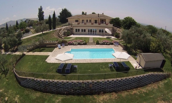 The Villa is nestled in the green scenery of olive groves on the hillside with breathtaking views in all directions from Rome to the Sabina Mountains. You will be welcomed in a villa in a comfortable independent apartment which benefits from its own private terrace with barbeque and stunning sunsets for al fresco diner. Located just 8 km from the town of Passo Corese, with all amenities, including the train service which is directly connected to Rome and the Fiumicino International Airport.