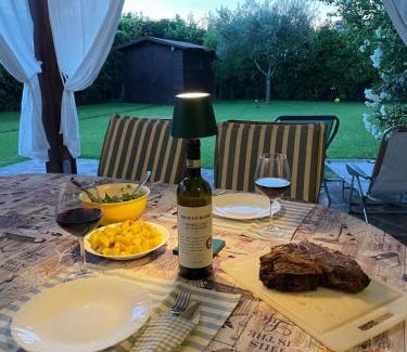 Offering a garden, Villa con porticato sul prato features accommodations in Isola Albarella. This property offers access to a terrace, free private parking, and free Wifi. On clear days, guests can head outside to enjoy the villa's outdoor fireplace or simply kick back and relax. The air-conditioned villa consists of 3 bedrooms, a living room, a fully equipped kitchen with a dishwasher and a coffee machine, and 2 bathrooms with a bidet and a hair dryer. Towels and bed linen are offered in the villa. For added privacy, the accommodation features a private entrance. During warmer months, you can make use of the barbecue facilities and eat on the private balcony. For guests with children, the villa offers an indoor play area, outdoor play equipment, and a baby safety gate. The villa has a picnic area where you can spend the day outdoors. Mare Vostrum Beach is 1.2 miles from Villa con porticato sul prato. Venice Marco Polo Airport is 50 miles from the property.