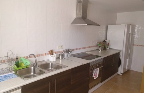 La cocina esta completamente equipada: Vitrocerámica, Frigorífico, Lavavajillas, Horno, Microondas, Cafetera, menaje completo.