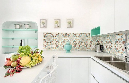The kitchen is equipped with a four-burner gas cooker, an electric oven, an American-style refrigerator with ice-maker, a dishwasher, an Italian-style coffee-maker, an American-style coffee-maker and a kettle. From the kitchen a French door will take you to the patio. The kitchen is equipped with an air conditioning/heating unit.