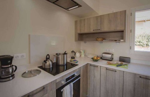Its terrace will allow you to organize pleasant meals outside. You will be able to enjoy its private heated swimming pool in complete freedom. It is secured by a roller shutter and is equipped with sunbeds and parasols.