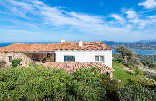 Magnificent and unique villa in San Pantaleo, surrounded by extraordinary scenery of Costa Smeralda with an exclusive 180 degrees view of Porto Rotondo, the Island of Tavolara, Portisco and Cala di Volpe.
