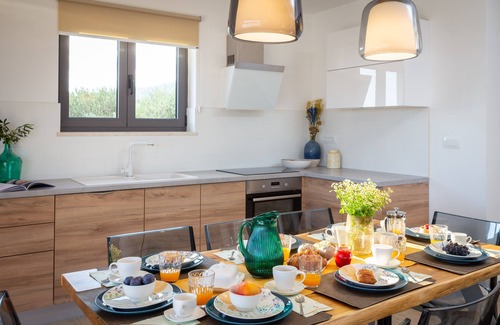 Situated in Kastela on a private, gated property of 5,000 m², the villa is surrounded by olive trees and offers a peaceful setting near both the mountains and the beach. Detached from neighbors and away from busy roads, it ensures complete privacy. Everything you need for a relaxing holiday is provided.