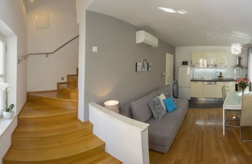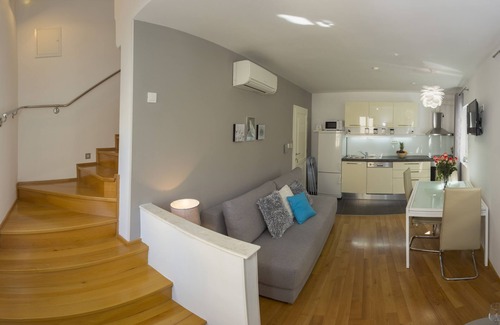 Villa Daky is a beautiful charming house built a few years ago in a authentic Dalmatian style.The house is located in the old town in the heart of Varos one of Splits oldest areas outside of the Diocleatian Palace.It is a just five minute walk distance to the centre of old town,Riva promenade,Diocleatian Palace,bus and train station and a ferry port.The Villa is on ideal position in old town as is sourounded by dalmatian restaurants, konobas, coffee shops, museums and galleries and it is also close to the pebble and sandy beaches, shops, fish and green markets, lots of hidden places in which you will enjoy. There are also bike routes around us. Marjan Hill starts 100 meters from us and from there you have the best view of the city.Villa Daky offers a modern-style accommodation and all unit are nicely decorated for a pleasent vacation.We have a two units (One bedroom apartment and One double room) each one of them with a separate entrance.From the top floor window you will have a magnificent view on historic city centre and the sea.We offer accommodation through whole year for available dates.We hope that you will enjoy stay in our Villa and our city of Split.Villa Daky is situated in the old town one of the oldest and the most picturesque parts of Split, the city founded 17 centuries ago by the Roman Emperor Diocletian. We are only 200 meters from the Diocletian's Palace and Split's old town, both listed on the UNESCO's World Heritage list. We are close the the Croatian National Theatre, at the foot of Marjan hill and forest park, and short walk from the main seaside promenade Riva you will find our house.In the house's closest vicinity you can experience some of local gastronomy gems. Popular wine and cheese bar Paradox is just around the corner. If you like ice cream, stand in line in front of the most popular parlour in town, Luka's Cakes & Ice Cream. At the walking range are numerous venues which turned Split into one of the Croatian capitals of gastronomy, such as taverns Varos, Hvaranin and Villa Spiza, pizzerias Galija and Maslina, restaurants Tinel, Nostromo, Bokeria, Uje, Mazzgoon and many, many others. Residents of Split usually say about their city that it's the craziest, but also the most beautiful in the world. As the second largest in Croatia, Split is a modern, vibrant city with a magnificent history.