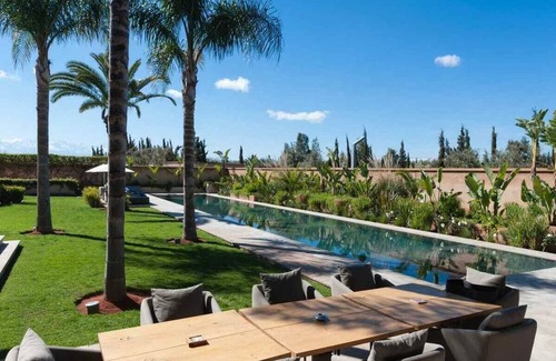 Located in Marrakech, this 6-bedroom, 6-bathroom villa lets you experience it all. Fans of nature and the outdoors will love being 14 minutes by car from Place des Ferblantiers and 12 minutes from Place of Youth. Make short work of the 3-minute drive to Eden Aquapark or the 7-minute drive to Noria Golf Club.