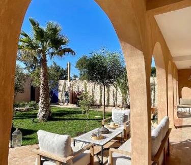 Villa DAR BOUMA offers accommodations in Ghazoua, 3 miles from Golf de Mogador. This property offers access to a balcony, free private parking, and free Wifi. The accommodation offers airport transfers, while a bicycle rental service is also available. Offering a terrace and pool views, the spacious villa includes 6 bedrooms, 2 living rooms, satellite flat-screen TV, an equipped kitchen, and 5 bathrooms with a shower. Featuring air conditioning, this unit has a dressing room and a fireplace. The villa offers bed linen, towels, and daily room service. The continental breakfast at the property offers local specialities as well as on-the-go options, such as fruit and juice. A mini-market is available at the villa. Guests can make the most of the garden, infinity pool, and yoga classes offered at the villa. A car rental service is available at Villa DAR BOUMA. Essaouira Mogador Airport is 5.6 miles away.