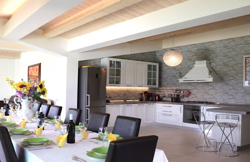 The Villa DeCarlonis has 5 bedrooms, all with en suite bathrooms and can accommodate up to 17/20 people. The Villa is a completely new building and has a private pool 7 meters wide by 18 meters long, with a large hot tub area and a Gajser for a exceptional relaxing experience ! The swimming pool is complete with sun loungers with mattresses.
