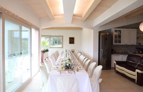 You have a large living area with large leather sofas, a big table for 20 people to eat together, and Wi-Fi. All guest rooms have linen available and towel sets and full bath in each room with a hairdryer. If required, there are also baby cots.