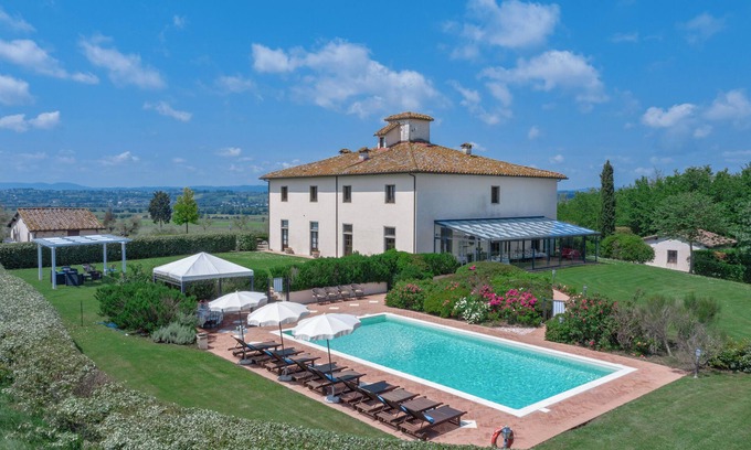 Welcome to Villa de' Michelangioli, a luxurious retreat perched on a hilltop in the heart of Tuscany's Valdichiana.