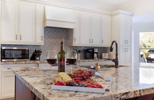 Indoor luxury: The home consists of three master suites. All with king beds and private ensuites, make the perfect place to relax after hosting your family. Bedroom four has a king bed, sharing a jack-n-jill style bathroom with bedroom five, which has a queen bed. Bedroom six has a queen bed sharing a full-size bathroom with bedroom seven, which has two full beds.