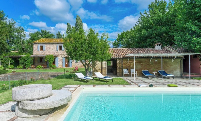 Located 13 km from the beaches of Fano, this fully fenced villa with pool is surrounded by a private garden.On the ground floor, there's a living room and a dining room adjacent to the kitchen, leading to the porch. There's a double bedroom with an ensuite bathroom with shower, a twin bedroom, a hallway with two single beds, and a bathroom with shower. On the first floor, there are two double bedrooms and a twin bedroom, a bathroom with shower, a half bath, and a suite comprising a study, a double bedroom, and a bathroom with tub. A dressing area is located by the pool.Villa Deda is a farmhouse located just 13 km from the sandy beaches of Fano. This fully fenced villa with pool enjoys complete privacy, with a garden dotted with beautiful, mature trees.On the ground floor, there's a spacious and bright living room and a dining room adjacent to the kitchen, leading to the porch furnished for outdoor dining. There's a double bedroom with an ensuite bathroom with shower, a twin bedroom, a hallway with two single beds, and a bathroom with shower. A living room adorns the porch that surrounds the house on two sides. The first floor features two double bedrooms and a twin bedroom, a bathroom with shower, a toilet, and a suite comprising a study, double bedroom, and bathroom with tub. The annex adjacent to the pool has a dressing area.Outside, there's everything you need to relax in the fresh air.This villa's strategic location makes it easy to reach beautiful cities of tourist interest: Fano with its beaches, shops, and ice cream parlors; Senigallia with its famous velvet beach and the Summer Jamboree, held annually in the first week of August; the Conero and San Bartolo natural parks for sea-view walks; and the nearby amusement parks of the Romagna Riviera.