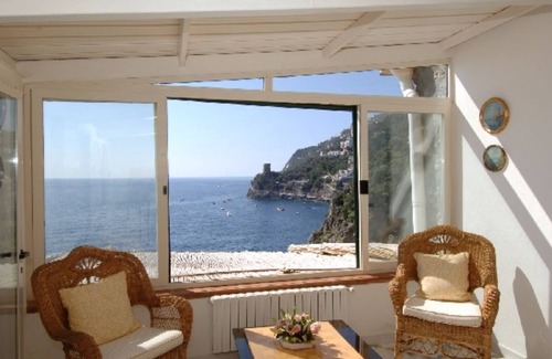 Villa del Fiordo is a beautiful 2-story house of 200 square meters. It was built right over the cliffs, observing their natural form. It is located at 2 km from the centre of Praiano, on the Amalfi Coast. In about 15 minutes you reach the pebble beach of Marina La Praia with its bars, a scuba diving school, a boat rental service and several restaurants, where you can taste the delicious local seafood. Villa del Fiordo provides a parking for 2 cars. The bus stop is at 5 minutes from the gate. Villa has a swimming pool and a direct access to the sea. Here you have a platform with sun beds and an external shower. The pool is shared with another villa. The garden is rich of lemon trees and bougainvilleas. To reach the house you have to go down 30 steps.