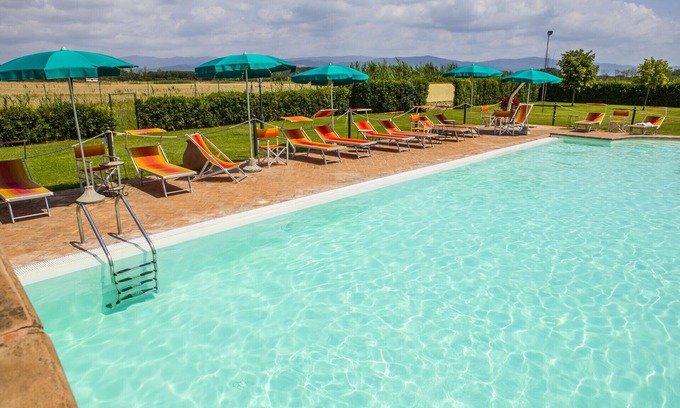 The property offers a large fully equipped swimming pool along with an outdoor area, in masonry, with a stone oven, ideal for outdoor breakfasts and to enjoy delicious grilled or Tuscan and Umbrian specialties. In the interior living room, where there is a large fireplace, you can instead find yourself having a chat or reading in peace. Outside there is also a nice tennis court and a fully fenced parking area.