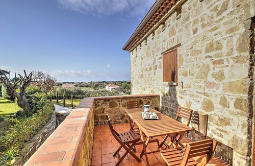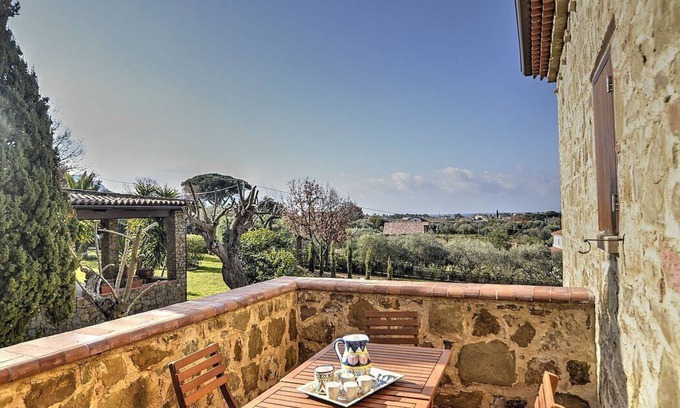 The terrace is 12 square meters (130 square feet) large. It is equipped with a table and chairs. From the terrace you will enjoy a fascinating view of the greenery and, partially, of the sea at a distance.