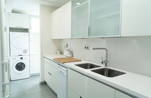 El apartamento tiene 2 dormitorios con ropa de cama, 2 baños exteriores con ducha. El dormitorio (uno) dispone de cama de matrimonio y el dormitorio (2) tiene 2 camas individuales. La cocina está totalmente equipada y destacamos su acogedor salón con salida a su gran terraza.