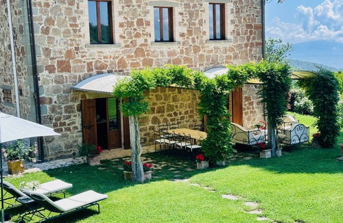 Located in Todi, this 6-bedroom, 6-bathroom villa lets you experience it all. Fans of nature and the outdoors will love being 18 minutes by car from Tiber River and 39 minutes from Foresta Fossile di Dunarobba. You'll easily make the 22-minute drive to Santa Maria della Consolazione or the 23-minute drive to Palazzo del Priore.