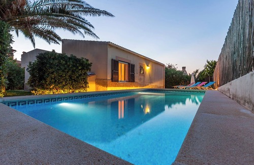 Enjoy a lazy afternoon basking in the sun on one of the four loungers, accommpanied by beautiful mountain views. The 7m x 3m chlorine pool with a depth ranging from 0.7m to 2m is private. Next to the pool there's a terrace which is perfect for a small breakfast. However, the porch is a nice spot for a barbecue with your family. Besides, there's an exterior shower. Children will enjoy the garden with 60m2-sized lawn area. The plot si fenced and there are direct neighbors. Indoors, a air conditioned living-dining room with satellite-TV (only German and Spanish channels) is open to a small kitchen equipped with vitro hob, oven and cooking utensils. The laundry has a washing machine, iron and ironing board. You can choose between three air conditioned bedrooms, two with double bed and one with a trundle bed. The latter has also a desk. The house has one bathroom with a shower. A cot and a high chair are available upon request. Located in the Nort-East of Mallorca, Betlem is a quiet and small urbanisation. The house is 400 meters from the sea and the rocky beach. By car you can explore more beaches (rocky and sandy) lik Ca Na Clara, Caló des Ermitans or Caló des Parral in Colonia de Sant Pere. As Betlem is a quiet and small town, for shops or restaurants you have to go to Colonia de Sant Pere (about 4 km away). Consult the advertiser for possible charges. Pets are welcome. The holding of events is forbidden. Distances Beach: 0.4 km - Cala Fonda Airport: 70.2 km - Aeroport de Son Sant Joan Golf course: 21.1 km - Golf Capdepera Town: 4.3 km - Colònia de Sant Pere Train station: 27.9 km - Estació de Petra Bus stop: 0.75 km - Av. Llorer, Betlem Ferry: 32.8 km - Port d'Alcúdia Hospital: 29.5 km - Hospital Juaneda Muro Tourist license: ETV/10580Single Rental Registry: ESFCTU0000070230006404370000000000000000000ETV/105802There's a mandatory tourist tax in Balearic Islands, called Ecotasa. All guests, except people under 16 years, have to pay this tax. The amount varies between 0.55€/night and guest during the low season and 2.2€/night and guest during the high season .The tax is reduced by half from the 9th day for your stay. Air Conditioning (January - December): 8 EUR/Night (optional)